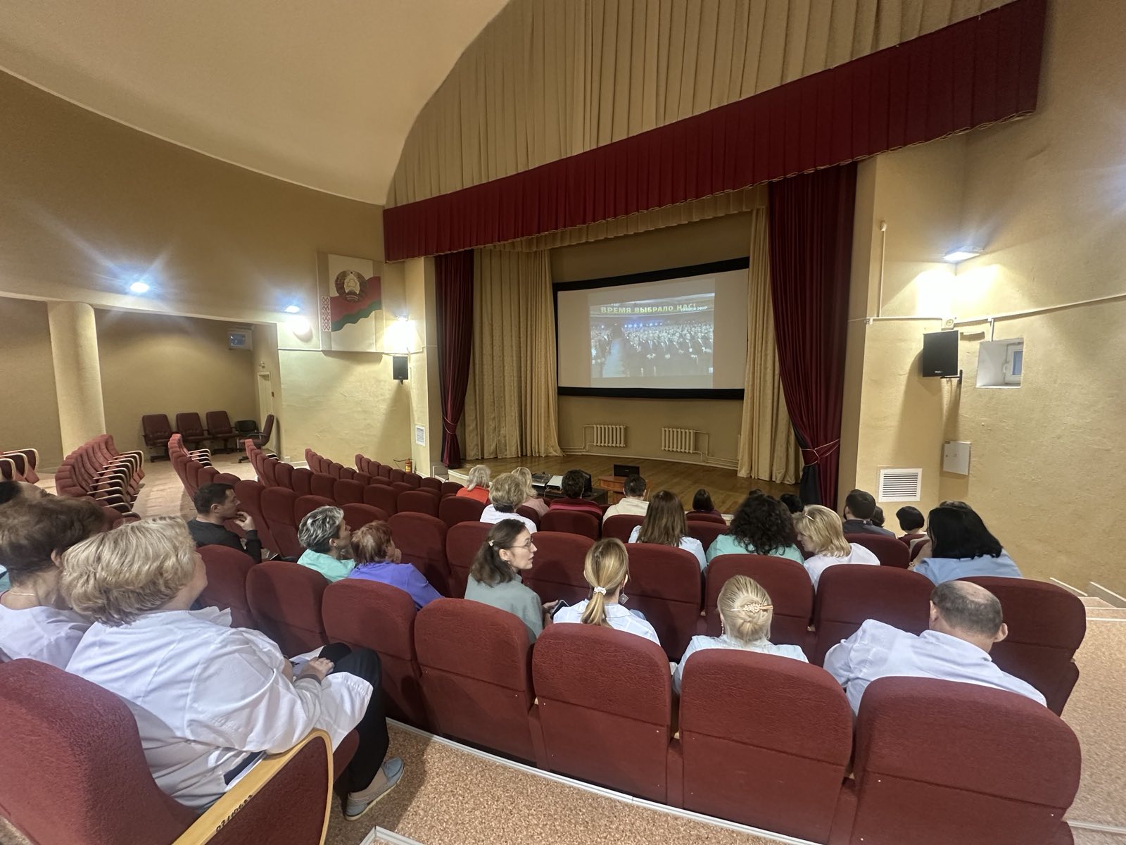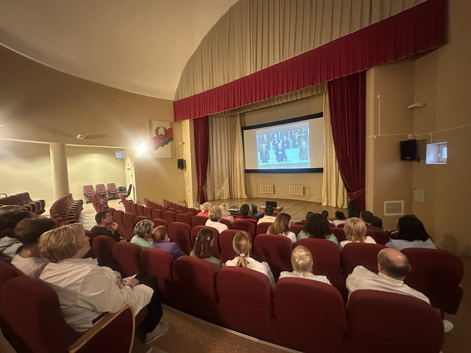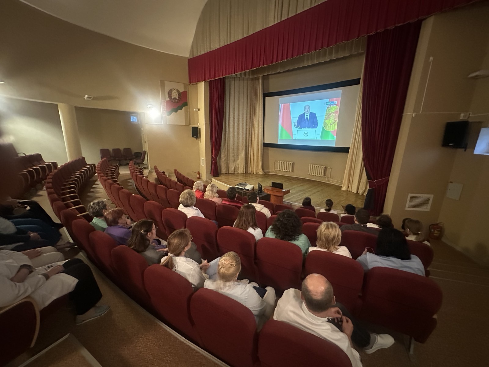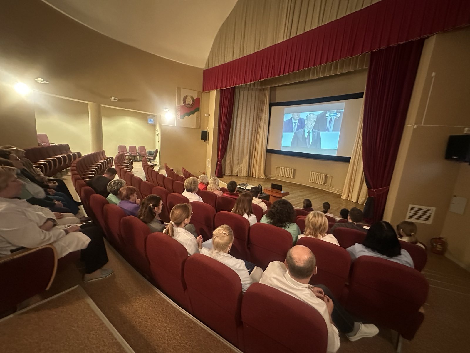 Сегодня коллектив нашей поликлиники собрался для совместного просмотра и последующего обсуждения прямой трансляции второго заседания VII ВНС, а также послания Главы государства.